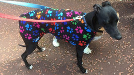 OMG these are amazing ,I’ve bought many coats that don’t fit correctly and wasted money. Janet will measure your pet and you can choose from many colours and designs. The finished coat fits perfect and my dog looks really warm and comfortable. I also bought matching collar and bandana just to add to the look